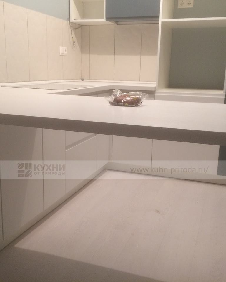 | Материал фасадов: | МДФ эмаль с фрезеровкой глубиной 33мм, имитирующей ручку с одного из торцов фасада. |
